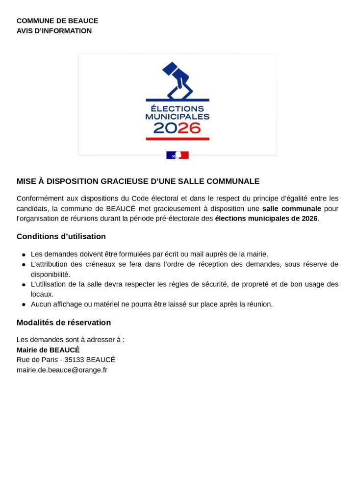 Mise à disposition gracieuse d’une salle communale – Période pré-électorale 2026