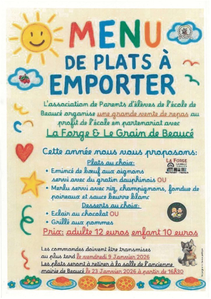 Vente de repas organisée par l’Association des Parents d’Elèves de l’école de Beaucé