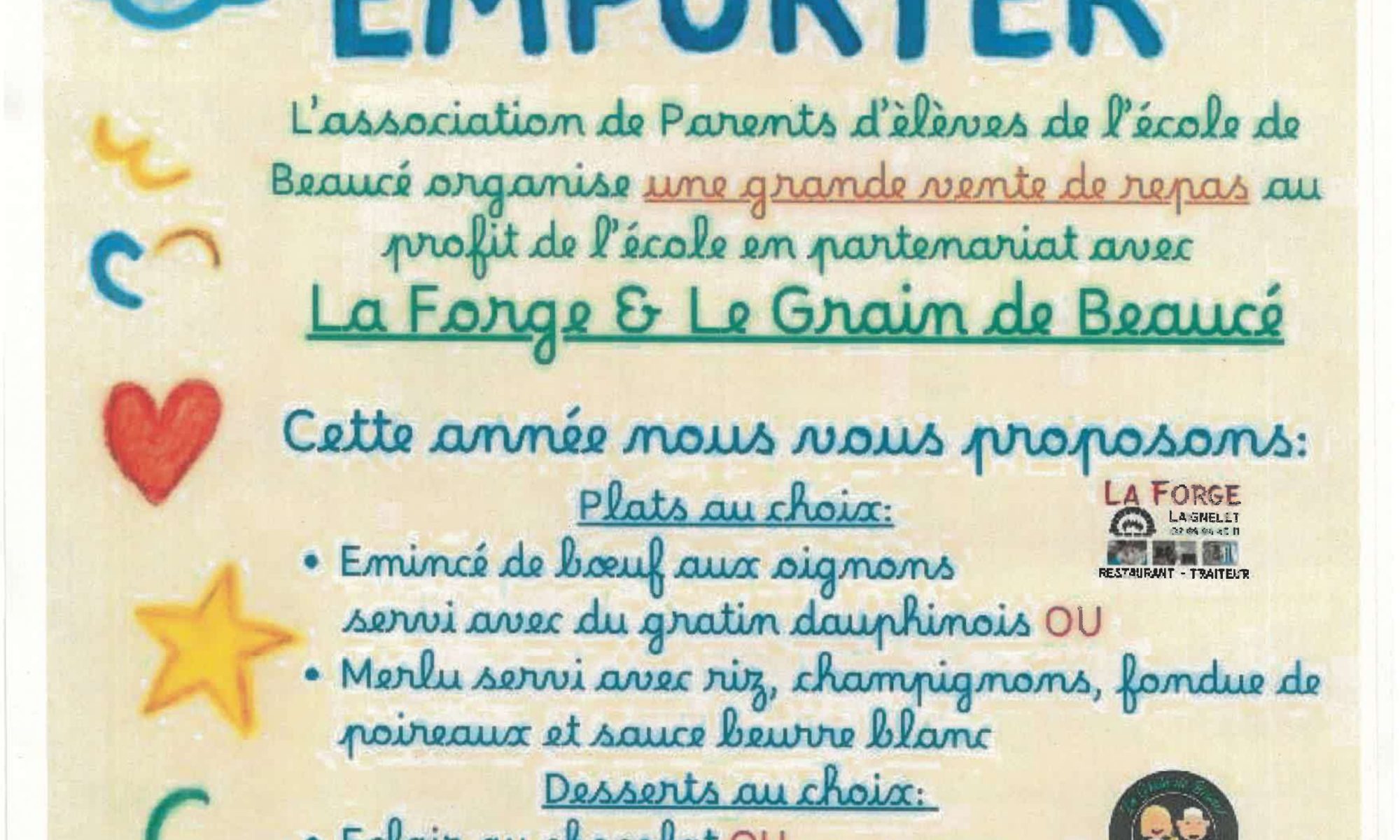 Vente de repas organisée par l’Association des Parents d’Elèves de l’école de Beaucé