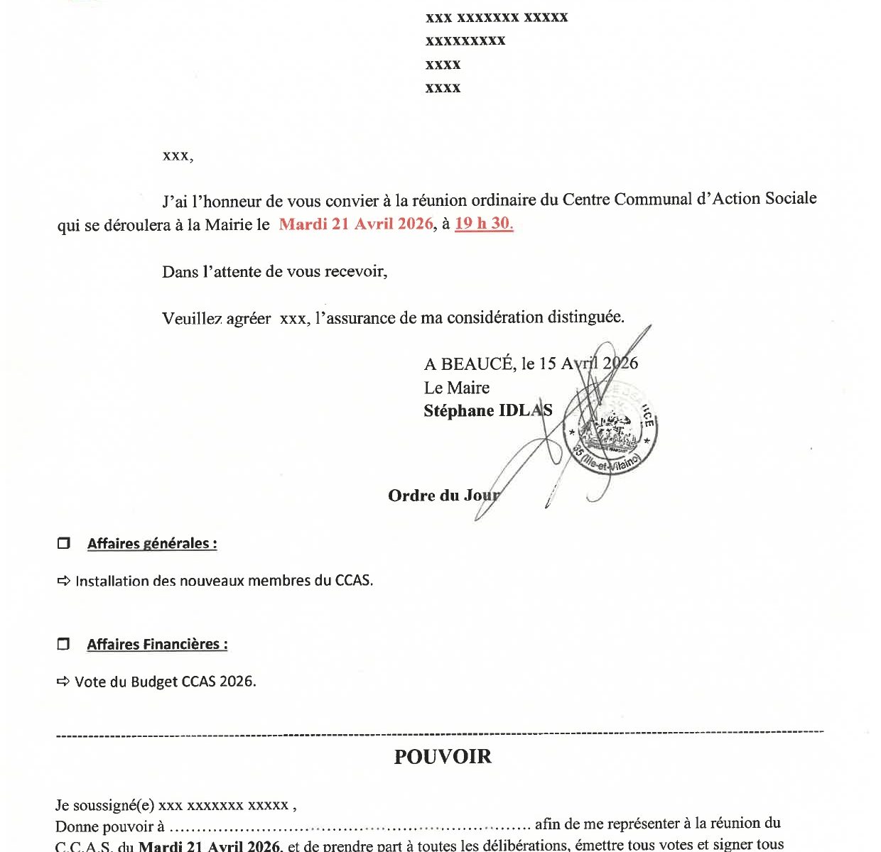 Convocation CCAS